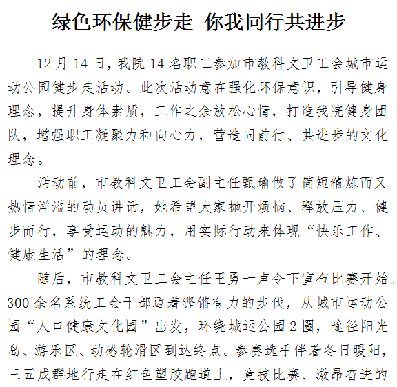 绿色环保健步走 你我同行共进步