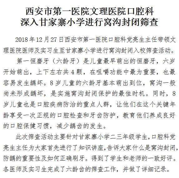 21点游戏攻略站 文理医院口腔科深入甘家寨小学进行窝沟封闭筛查