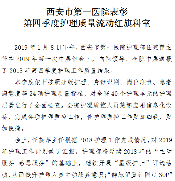 21点游戏攻略站 表彰第四季度护理质量流动红旗科室
