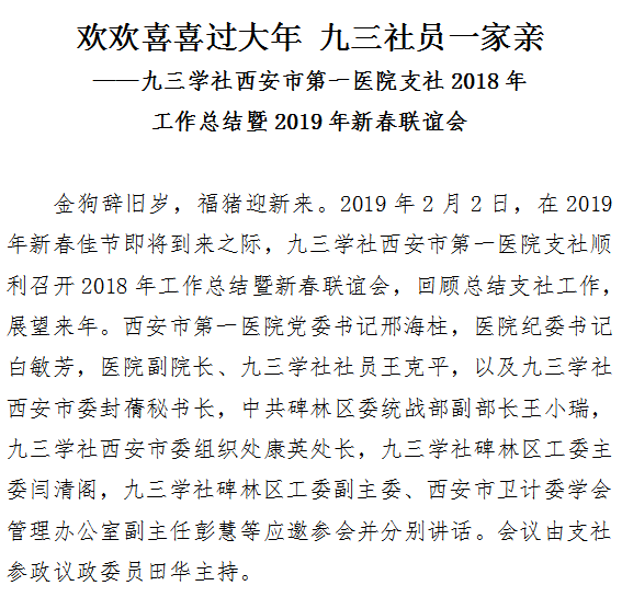 欢欢喜喜过大年 九三社员一家亲 ——九三学社21点游戏攻略站 支社2018年工作总结