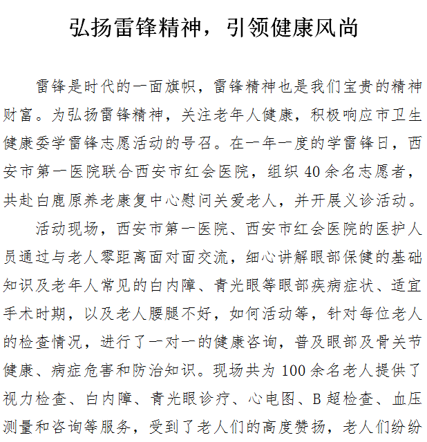 弘扬雷锋精神,引领健康风尚
