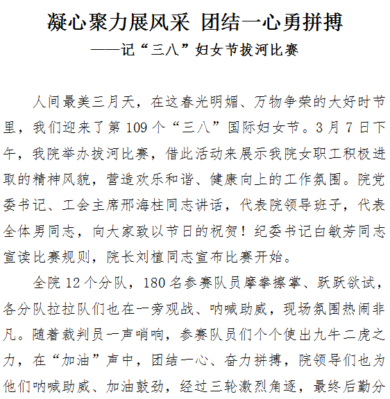 凝心聚力展风采 团结一心勇拼搏——记“三八”妇女节拔河比赛