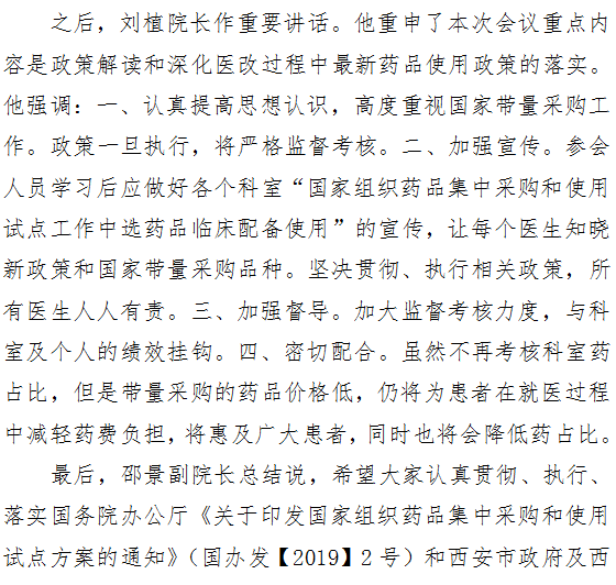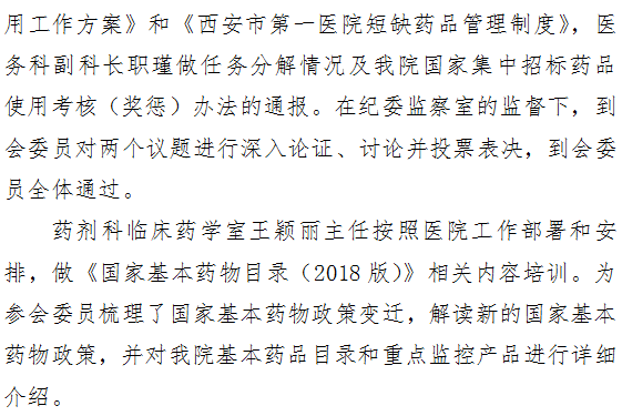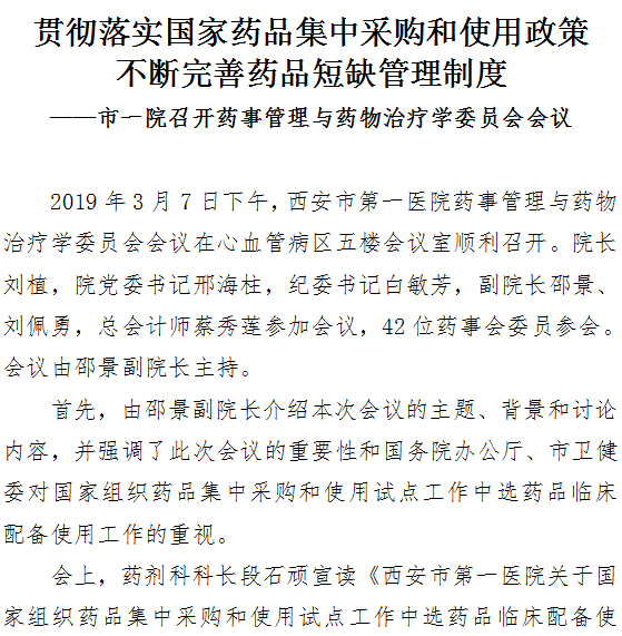 贯彻落实国家药品集中采购和使用政策 ——市一院召开药事管理与药物治疗学委员会会议
