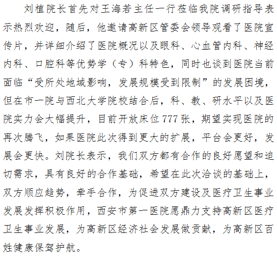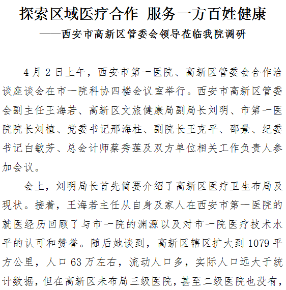 探索区域医疗合作 服务一方百姓健康——西安市高新区管委会领导莅临21点游戏攻略站 调研