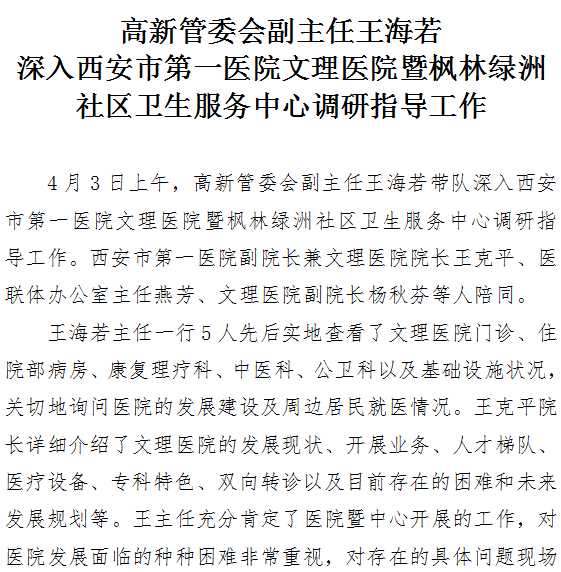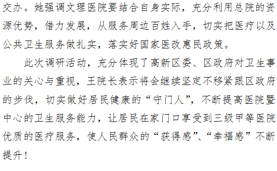 高新管委会副主任王海若深入市一院文理医院暨枫林绿洲社区卫生服务中心调研指导工作