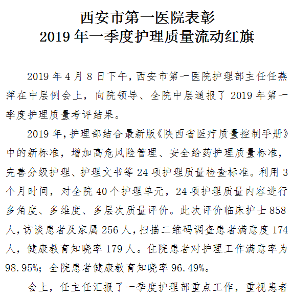 21点游戏攻略站 表彰2019年一季度护理质量流动红旗