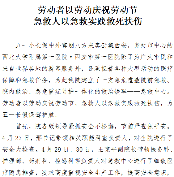 劳动者以劳动庆祝劳动节 急救人以急救实践救死扶伤