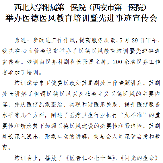 西北大学附属一医院(21点游戏攻略站 ) 举办医德医风教育培训暨先进事迹宣传会