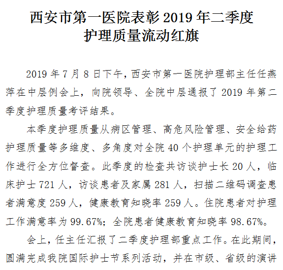 21点游戏攻略站 表彰2019年二季度 护理质量流动红旗