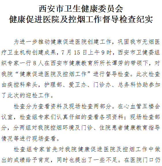 西安市卫生健康委员会 健康促进医院及控烟工作督导检查纪实
