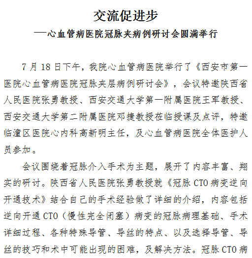 交流促进步—心血管病医院冠脉夹 病例研讨会圆满举行