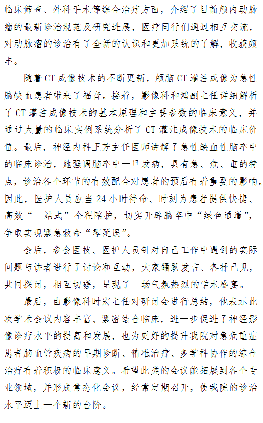 脑血管病诊治学术交流 —记影像科、神经外科及神经内科 学术联席会议