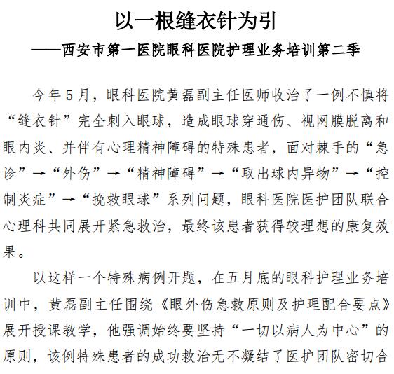 以一根缝衣针为引——21点游戏攻略站 眼科医院护理业务培训第二季