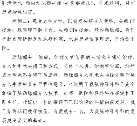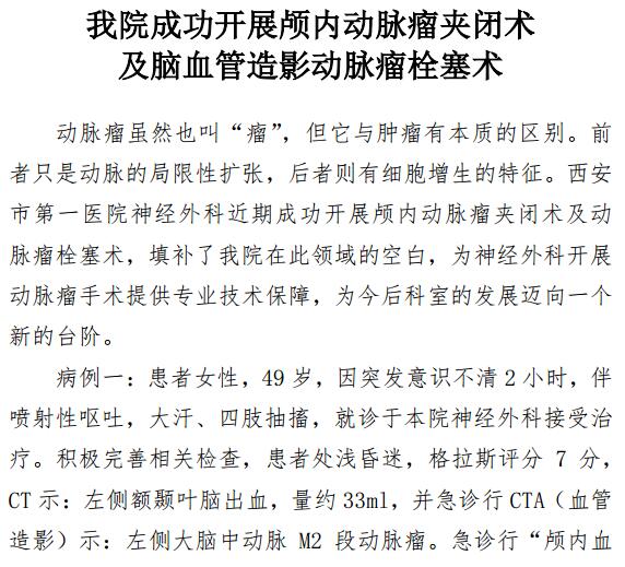 21点游戏攻略站 成功开展颅内动脉瘤夹闭术及脑血管造影动脉瘤栓塞术