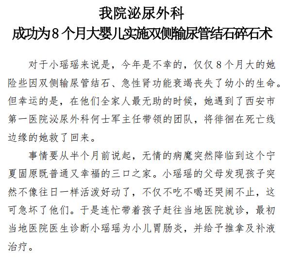 21点游戏攻略站 泌尿外科成功为8个月大婴儿实施双侧输尿管结石碎石术
