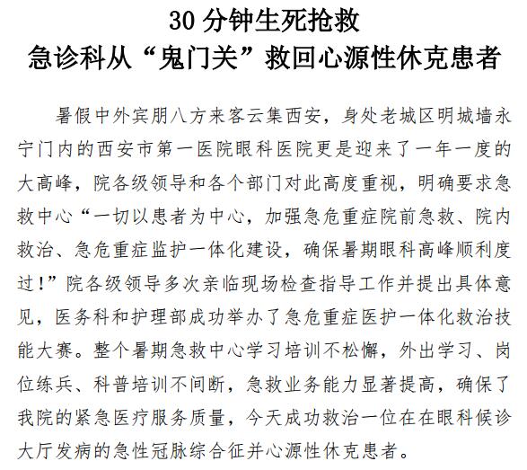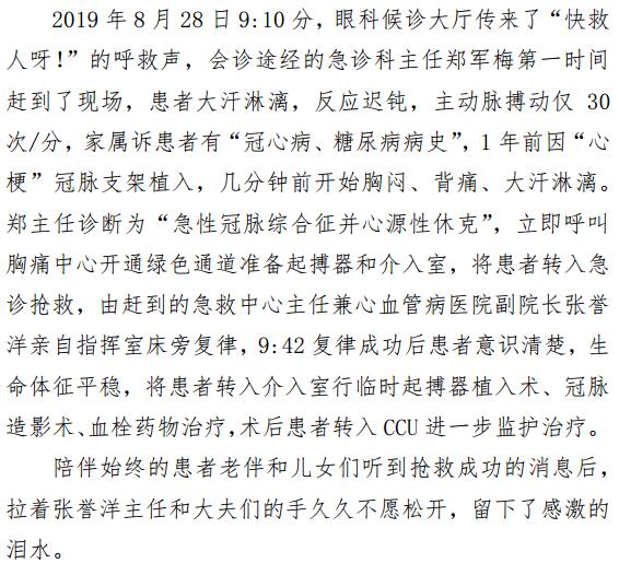 30分钟生死抢救 急诊科从“鬼门关”救回心源性休克患者