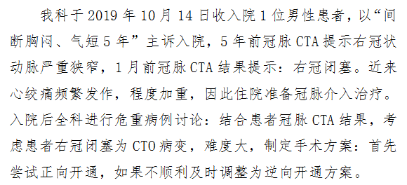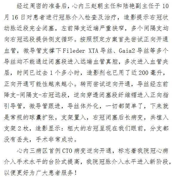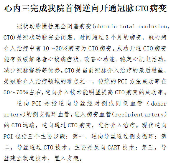 心内三完成21点游戏攻略站 首例逆向开通冠脉CTO病变