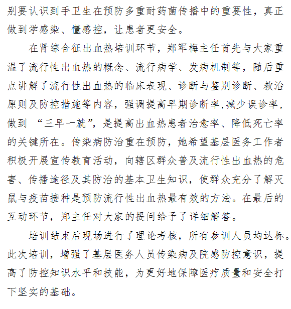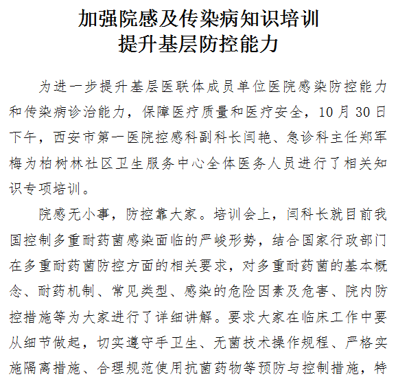 加强院感及传染病知识培训提升基层防控能力